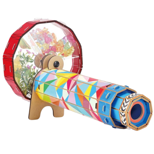 Этот набор позволяет собрать объемную модель Калейдоскопа, классического оптического прибора. Сборка модели из 64 деталей станет отличным семейным занятием, которое поможет объяснить принципы работы прибора, создающего симметричные узоры за счет отражения света и цветных элементов. Готовая модель имеет компактные размеры 25,5 × 14 × 16,5 см. Пазл предназначен как для детей, так и для взрослых, способствуя развитию пространственного мышления и аккуратности. Для дополнительной образовательной ценности в комплект включен 32-страничный обучающий буклет.