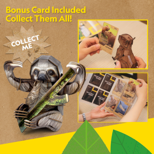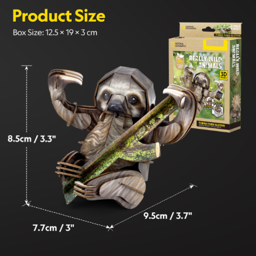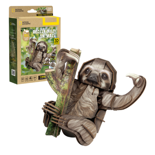 Этот 3D-пазл из серии National Geographic позволяет собрать очаровательную и реалистичную модель Трёхпалого ленивца. Набор состоит из 52 деталей из переработанного картона. Отличительная особенность этой модели — подвижная шея и съемная ветка, которую ленивец может держать, имитируя свое естественное положение в тропическом лесу. Это увлекательное и познавательное занятие, развивающее творческое мышление, мелкую моторику и экологическое сознание.