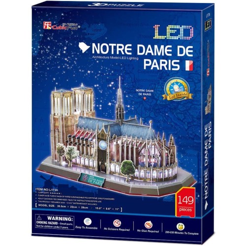 3D пазл “Собор Парижской Богоматери”со светодиодной подсветкой, 149 элементов