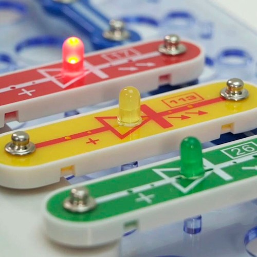 Электронные компоненты (35 видов), включая: RGB-светодиод, фоторезистор, динамик, электродвигатель, транзисторы, резисторы и многое другое.