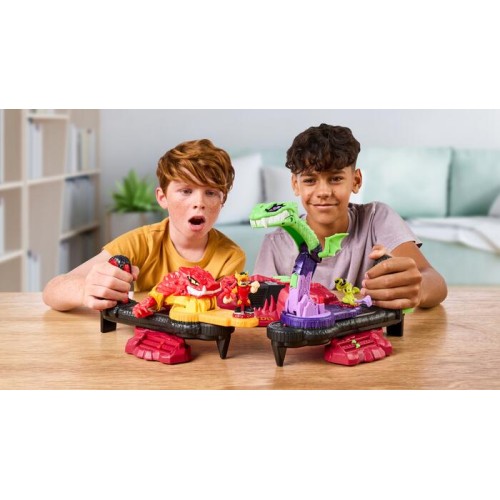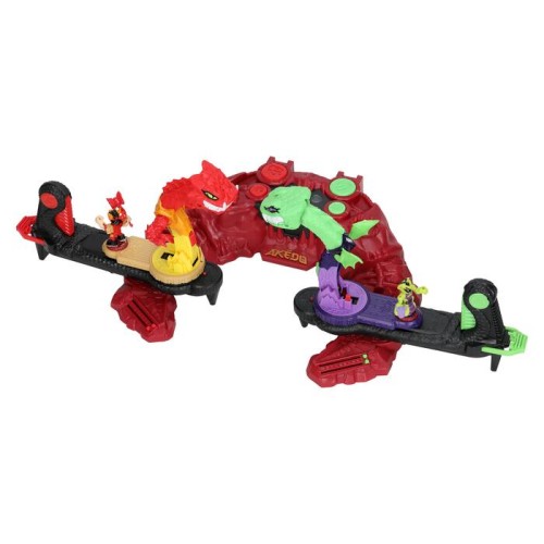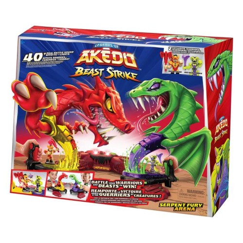 Познакомьтесь с новой ареной Legends of Akedo "Beast Strike" Serpent Fury — идеальным местом для захватывающих сражений! Здесь вы найдете три уникальных режима боя: зверь против зверя, зверь против бойца и боец против бойца. Чтобы стать чемпионом, одолейте всех своих соперников — как бойцов, так и зверей!