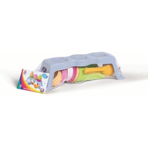 Лето — время весёлых игр на песке, и этот набор превращает каждую песочницу в сладкий рай! Яркие формочки в виде рожков и шариков мороженого позволяют детям создавать свои собственные «десерты» из песка. Удобная подставка помогает аккуратно разместить «угощения», а цвета набора радуют глаз и вдохновляют на фантазию.