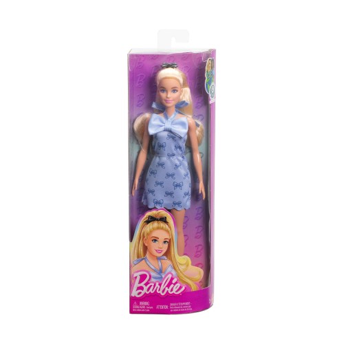 - 1 кукла Barbie Fashionistas (с волнистыми светлыми волосами в хвосте и голубым бантом)