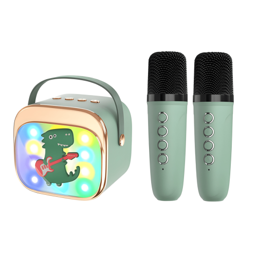 Караоке-колонка с 2 микрофонами и LED-подсветкой (зелёная)