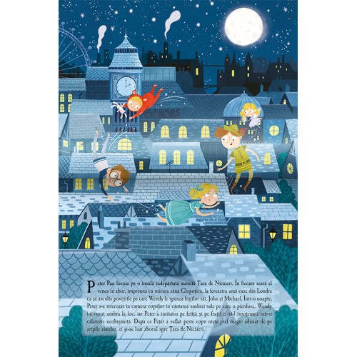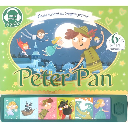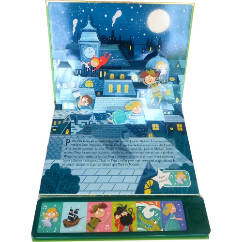 Эта интерактивная звуковая книга издательства Prut из коллекции «Звуковая книга с 3D-картинками» (Carte sonoră cu imagini pop-up) оживляет классическую историю о Питере Пэне с помощью объемных (pop-up) иллюстраций и звукового сопровождения. Мир сказки оживает благодаря великолепным 3D-картинкам и включенным звукам. Питер Пэн приглашает Венди и ее братьев в Неверленд (Țara de Nicăieri). Они отправляются в необыкновенное путешествие, где встречаются с Капитаном Крюком и потерянными детьми. Читатели могут отсканировать QR-код, чтобы прослушать историю.