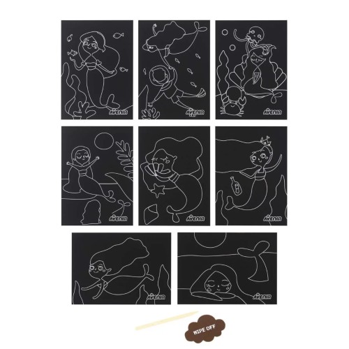 Подарите вашему ребёнку увлекательное занятие с скретч-книгой Junior – Моя Русалочка от AVENIR! Этот набор для творчества позволяет создавать яркие и красочные изображения русалочек, используя специальный стилус для удаления верхнего слоя с чёрных страниц.
