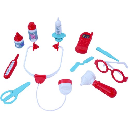 Включает 11 аксессуаров, в том числе стетоскоп, шприц и мобильный телефон.