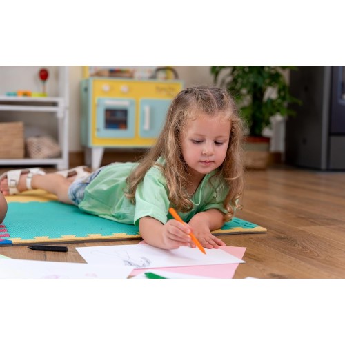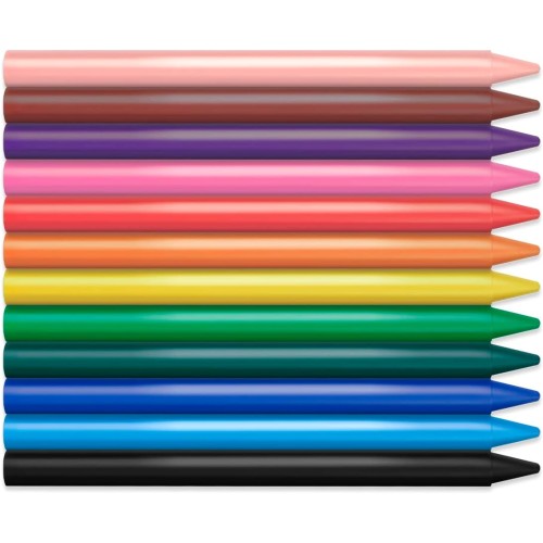 Палитра из двенадцати красивых чистых цветов (желтый, красный, телесный, зеленый, голубой, синий, фиолетовый, оранжевый, розовый, темно-зеленый, коричневый, черный).