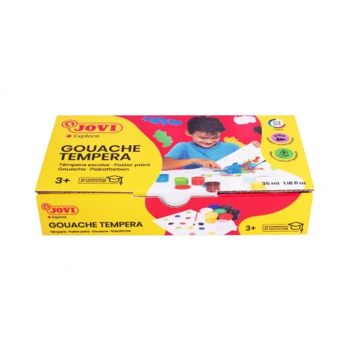 Гуашь-темпера Jovi изготовлена на основе натуральных ингредиентов и обладает отличной покрывающей способностью. Она имеет интенсивные, смешивающиеся цвета и быстро сохнет. Эта темпера легко смывается и не содержит глютена и каких-либо основных аллергенов.