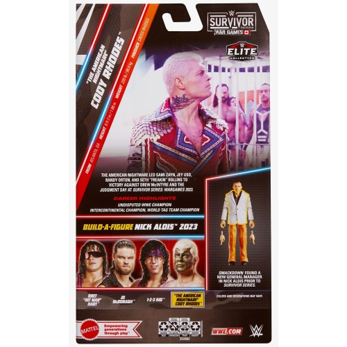 Mattel WWE Elite Collection: Survivor Series War Games “The American Nightmare” Cody Rhodes - воплощение харизмы, силы и стиля! Эта детализированная фигурка посвящена одному из самых культовых рестлеров современности — Коди Роудсу, известному как The American Nightmare. Его возвращение на арену WWE стало настоящим событием, и теперь фанаты могут заполучить кусочек этой легенды в виде невероятно реалистичной фигурки из серии Elite Collection. Фигурка воссоздана с высокой точностью — от легендарного костюма до символичных татуировок. Артикуляция позволяет воспроизводить самые мощные и динамичные движения из его выступлений на Survivor Series War Games.