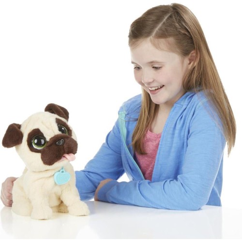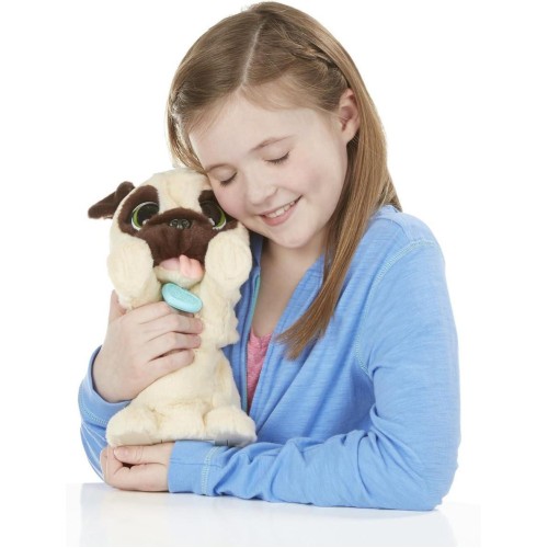 Джей-Джей, Прыгающий Мопс - это один из самых любимых интерактивных питомцев в знаменитой серии FurReal Friends от Hasbro. Он создан, чтобы подарить детям ощущение заботы о настоящем, очень игривом щенке, не требуя при этом реальных усилий. Мопс Джей-Джей имеет высоту около 20 сантиметров и отличается высококачественной, невероятно мягкой плюшевой шерстью бежево-темно-коричневого окраса. У него большие выразительные глаза и добродушная мордочка, характерная для мопсов, что делает его не только игрушкой, но и уютным другом для объятий. На его шее закреплен яркий ошейник с фирменной биркой FurReal Friends.