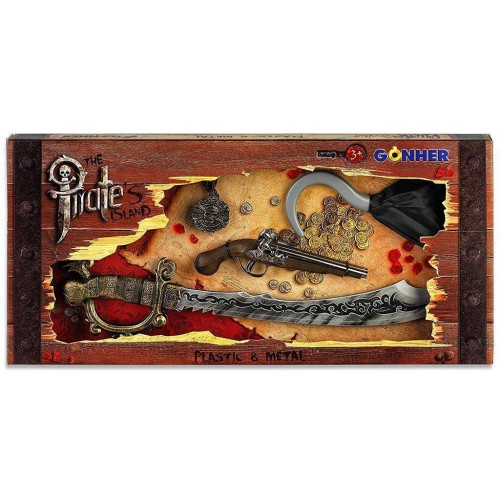 Игровой набор «Пиратский» — прекрасный подарок для активного мальчика старше трёх лет. Револьвер, выполненный в реальную величину, сделан из высококачественного металла и экологически чистого пластика. На корпусе и рукоятке нанесены специальные потёртости и дизайнерская роспись. Выстрел осуществляется путём перезарядки ружья.