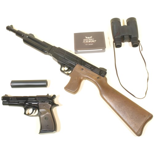 Игровой набор Gonher Secret agent — идеальный комплект для ролевых игр в шпионов и секретных агентов! В набор входят винтовка и пистолет, которые выглядят очень реалистично, а также аксессуары, необходимые для выполнения самых сложных миссий: бинокль, глушитель и удостоверение агента.