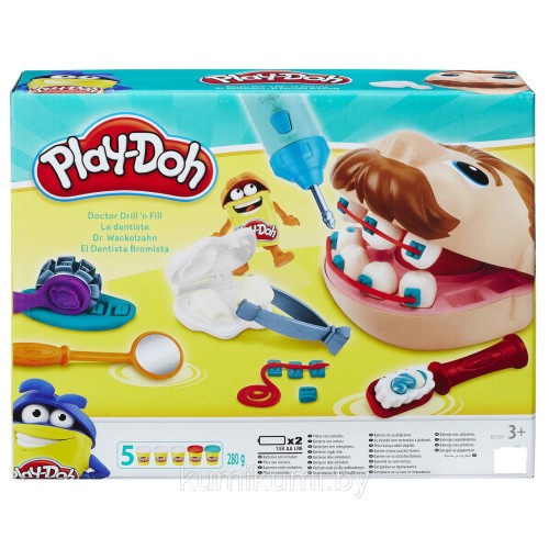 Содержимое: голова с моделируемыми зубами, 5 цветов пластилина, стоматологические инструменты, аксессуары;