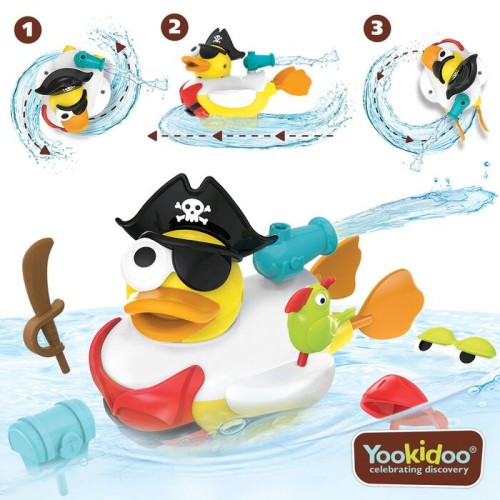 Поднимайте якоря и готовьтесь к захватывающему купанию! "Утка - Пират" от Yookidoo — это не просто уточка, а настоящий плавучий корабль, который умеет быстро двигаться, стрелять водой из пушки и менять маршрут. Благодаря 15 пиратским аксессуарам, ребенок может каждый день создавать для утки новый забавный образ, развивая воображение и мелкую моторику.