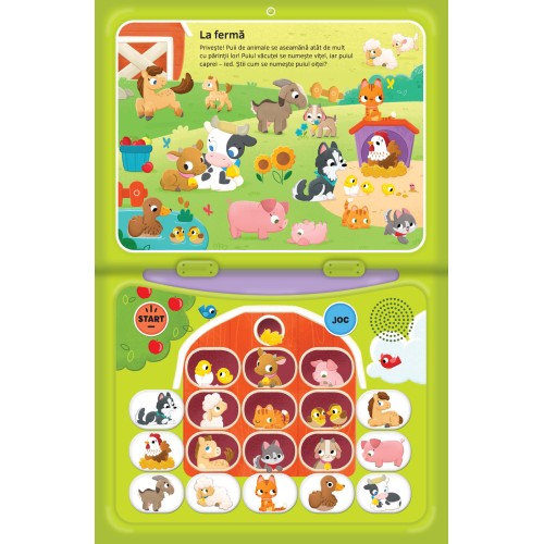 Эта интерактивная звуковая книга-ноутбук поможет ребенку выучить названия животных и развить когнитивные и сенсорные навыки. Нажимая на кнопки на странице, малыш сможет в веселой и увлекательной форме узнать, где живут животные, какие звуки они издают, и многое другое, слушая и сопоставляя слова с изображениями в книге.