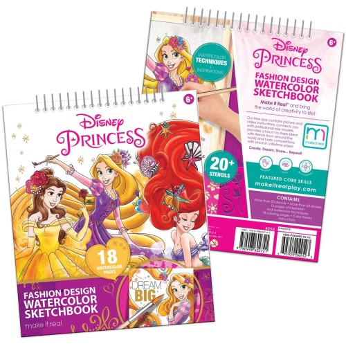 Make it Real: Carte de colorat cu acuarelă "Disney Princess: Fashion Design"