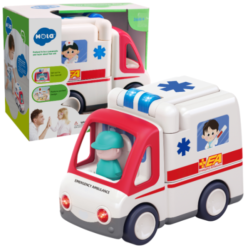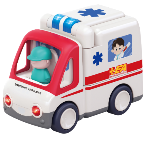 Яркая и реалистичная машинка «Скорая помощь» мгновенно привлечёт внимание ребёнка! Нажми на кнопку — и включаются мигалки, сирена и звуки двигателя, создавая атмосферу настоящей спасательной миссии.