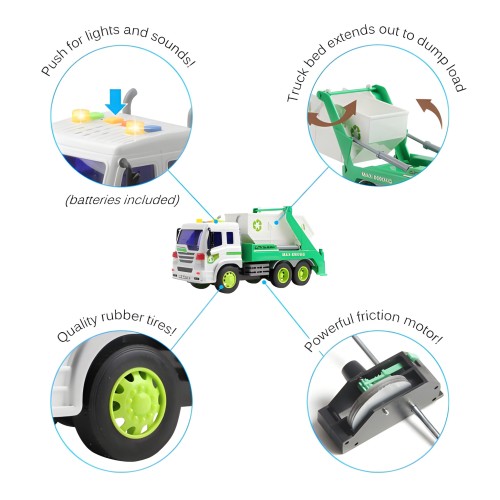 Функциональность: Модель часто имеет подвижные элементы (например, открывающуюся заднюю часть или поднимающуюся/опускающуюся платформу) для имитации процесса загрузки и выгрузки мусора.