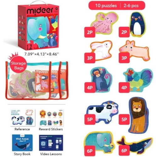 Mideer Серия пазлов “Животные” 10 в 1, уровень 1