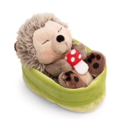 NICI Мягкая игрушка "Ежик с грибами спящий в зеленой корзинке'', 12 см уютно устроился в светло-зелёной плюшевой корзинке, чувствуя себя как дома и под заботой — корзинка также отлично подходит для подарка. Плюшевый ёжик и корзинка могут использоваться отдельно.