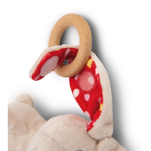 NICI Мягкая игрушка "Зайчик Тилли", 15 см — очаровательная погремушка - прорезыватель из лучшего плюша. Зайка с яркими деталями и длинными висящими ушками держит при себе деревянное кольцо-прорезыватель.