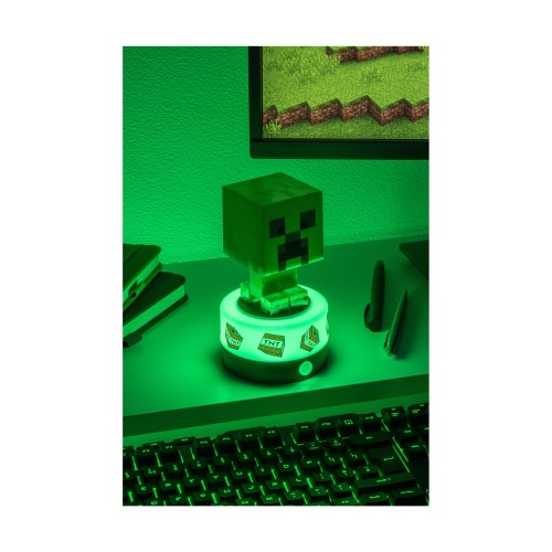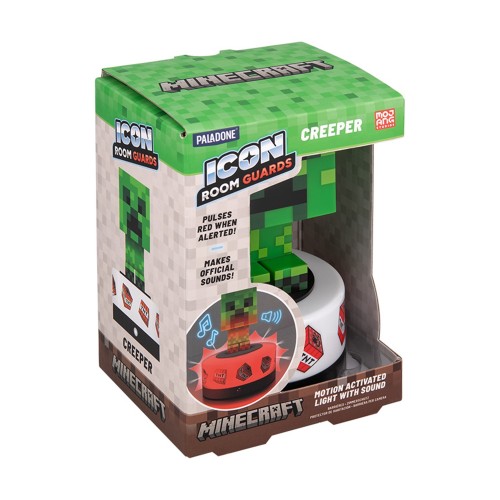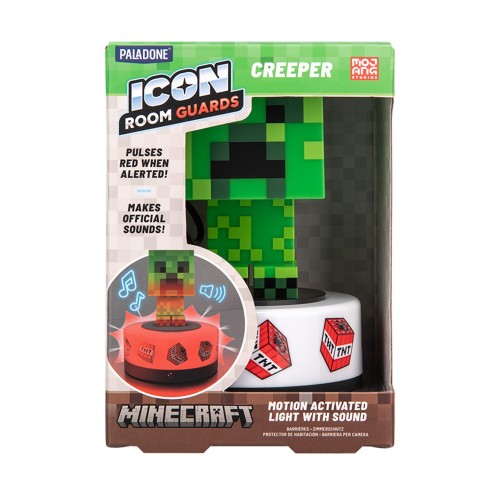 Это официальный лицензированный охранник комнаты в виде Крипера из игры Minecraft, произведенный компанией Paladone. Он сочетает в себе декоративную лампу с функцией датчика движения и звуковыми эффектами. 3D-фигурка Крипера, выполненная в пиксельном стиле Minecraft и активируется датчиком движения. При обнаружении движения Крипер загорается красным светом и воспроизводит официальные звуки Крипера (шипение, как в игре), чтобы "отпугнуть" незваных гостей. Лампу можно использовать как обычный ночник для мягкого освещения. Высота фигурки составляет примерно 15 см. Может работать от USB-кабеля (включен в комплект). Также может работать от 3 батареек типа AAA (не включены в комплект) для беспроводного использования.