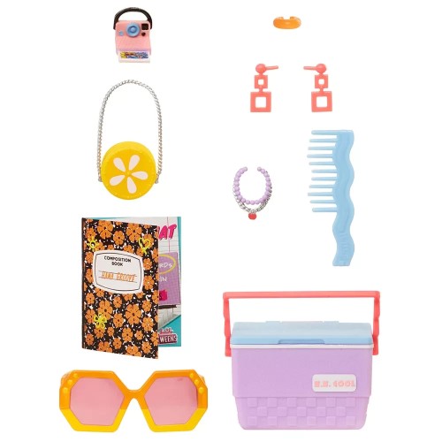 Аксессуары для Вечеринки: В набор входит множество аксессуаров, подчеркивающих ее любовь к вечеринкам и солнечным дням:
