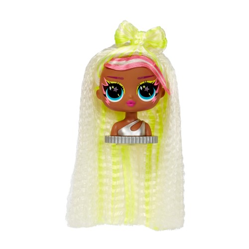 Сменный образ: Мгновенное изменение стиля благодаря дополнительной сменной голове-манекену с платиново-светлыми волосами (с розовыми или желтыми прядями) и другой прической.