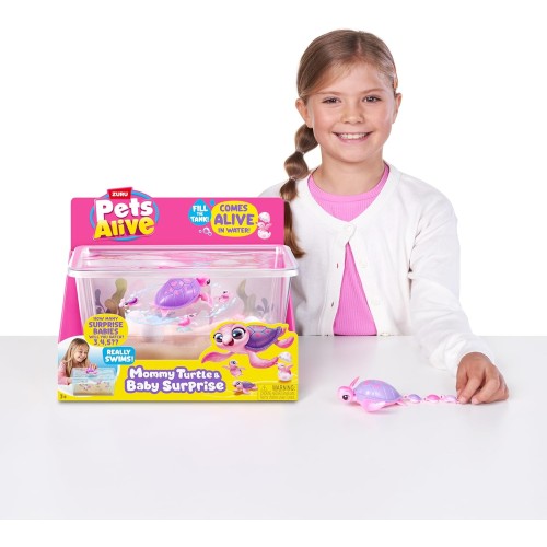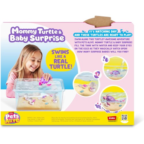 Приготовьтесь к самому милому и волшебному моменту – рождению! Набор ZURU PETS ALIVE Mama Turtle Surprise дарит невероятный опыт взаимодействия: интерактивная мама-черепаха приплывает, чтобы отложить свои яйца с маленькими сюрпризами.