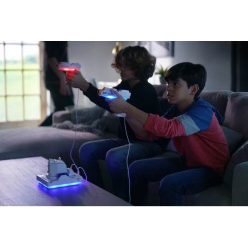 Projex - это инновационная игровая система, которая проецирует анимированные мишени на любую светлую стену, превращая ее в динамичный тир. Вам не нужен телевизор или какие-либо датчики, просто направьте проектор на плоскую поверхность, и игра начнется. В комплект входят два бластера-пистолета, что позволяет игрокам соревноваться в одиночку или в режиме дуэли. На дисплее бластера отображается счет, и игроки могут переключаться между тремя различными мишенями: тарелки (утки), пришельцы и мишени. Игрушка подходит для детей от 6 лет и старше.