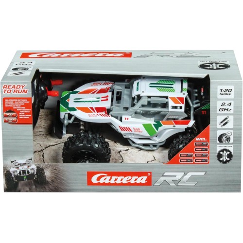 Team Rider от Carrera RC - это динамичный, яркий багги, созданный для фанатов скоростных гонок по бездорожью. Выполненный в привлекательной ярко-салатовой и желтой расцветке, этот внедорожник привлекает внимание везде, где бы он ни мчался! Модель в масштабе 1:20 (длина около 23 см) идеально подходит для захватывающих экспедиций как в детской комнате, так и в саду.