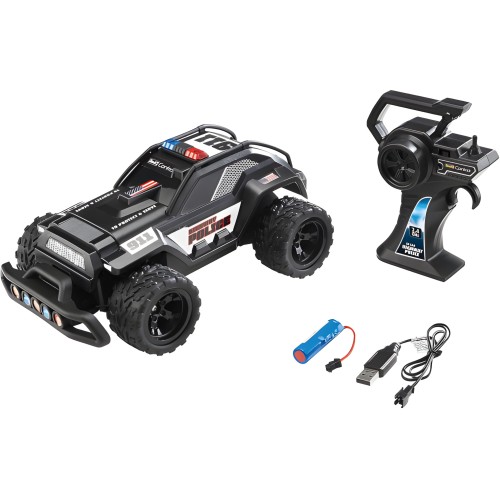 Представляем мощную радиоуправляемую полицейскую машину в масштабе 1 : 16 — идеальный набор для детей от 6 лет! Она готова к высоким скоростям и зрелищным преследованиям: большая резиновая резина, точное рулевое управление и яркий синий маяк создают эффект настоящей дорожной миссии. Большая фишка — дистанционное управление на частоте 2,4 GHz, что позволяет управлять машиной одновременно с друзьями без помех. Зарядный литий-ионный аккумулятор и USB-зарядка обеспечивают комфортное использование дома или на улице.
