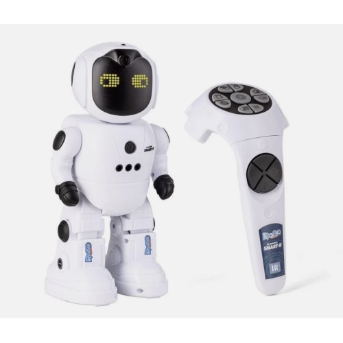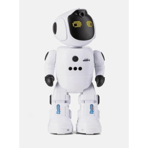 Познакомьтесь с Smart-R — умным и дружелюбным роботом, созданным для того, чтобы дети могли весело и увлекательно исследовать цифровой мир. Он сочетает в себе современные технологии и интуитивную игру: робот реагирует на жесты, сенсоры прикосновения, у него есть LED-дисплей лица, музыка и танцы. Smart-R управляется при помощи инфракрасного пульта, можно программировать движения головы и тела, активировать демо-режим и наблюдать, как он оживает и танцует.