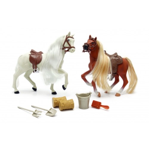 - Две Благородные Лошади: Две красивые фигурки лошадей, которые станут главными героинями всех приключений. Их длинные, мягкие и шелковистые гривы - настоящий призыв к творчеству! Ребенок может расчесывать их, заплетать косы и создавать уникальные прически, развивая при этом мелкую моторику.