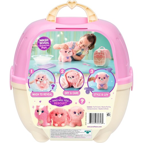Чтобы увидеть, какой именно друг вам достался, и раскрыть всю его красоту, необходимо провести волшебный ритуал: выкупать его в теплой воде, просушить и тщательно расчесать. На глазах у ребенка грязный и грустный комочек превратится в мягкого, нежного и полностью преображенного питомца, готового стать членом семьи. Этот розовый SCRUFF-A-LUVS учит безусловной любви, ответственности и радости от того, что ты можешь сделать мир лучше для маленького существа.