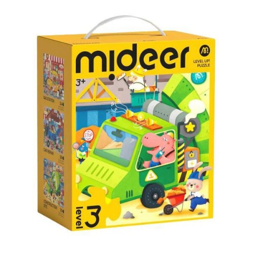 Серия пазлов «Городской транспорт» от Mideer, Уровень 3, знакомит детей с миром машин и городских служб. Этот набор «3 в 1» включает три пазла с постепенно возрастающей сложностью (24, 30 и 35 деталей), что позволяет ребенку переходить от простых сюжетов к более сложным, развивая интерес к городской инфраструктуре и стимулируя фантазию. Пазлы изображают красочные сцены из городской жизни: такси в автосервисе, машины в ремонтной мастерской, грузовик на стройплощадке. Сборка пазлов отлично развивает логическое мышление, зрительно-моторную координацию, внимание и терпение.