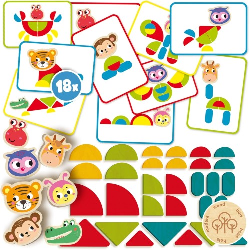 С помощью специальных самоклеящихся элементов и основ дети учатся работать с геометрическими формами и цветами, повторяя контуры животных или придумывая собственные фантастические создания. Методика Монтессори, заложенная в основу набора, поощряет самостоятельность и обучение через прямой практический опыт. Этот набор предлагает не только часы увлекательного творчества, но и прекрасную возможность изучить животный мир, цвета и формы в веселой, непринужденной манере.