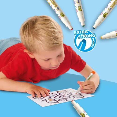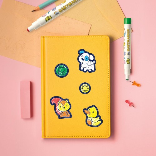 Используя входящие в комплект безопасные и легко смываемые восковые мелки, ваш ребенок сможет легко раскрасить наклейки, а затем приклеить их на бумагу или любую другую поверхность. Процесс раскрашивания наклеек — это двойное удовольствие: сначала творчество, а затем игра с готовым результатом! Этот набор идеально подходит для первых шагов в мире цвета, формы и аппликации, делая обучение веселым и ярким.