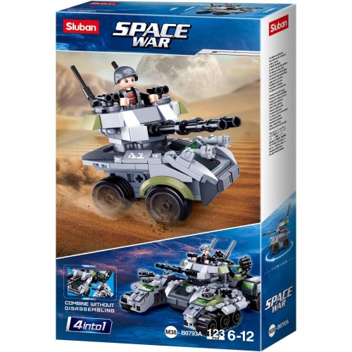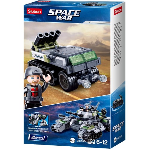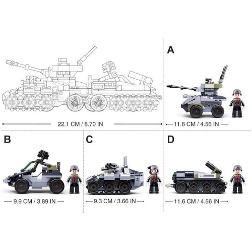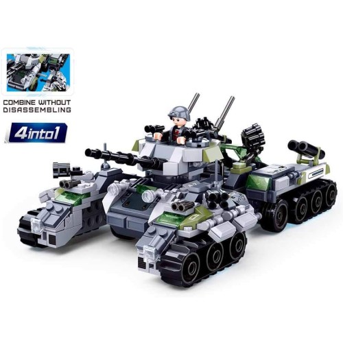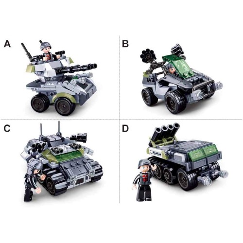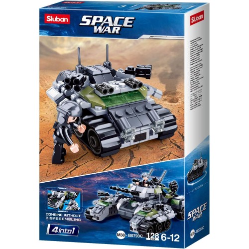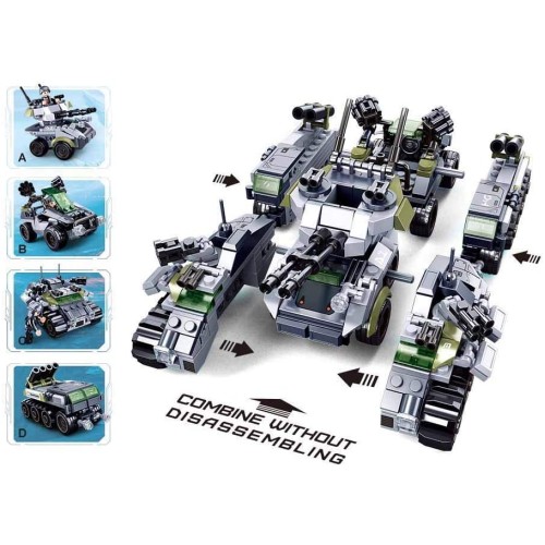 Каждый набор из 4 представляет собой интересную и уникальную модель военной космической техники для сборки, собрав все модели вы сможете их соединить в один большой танк.