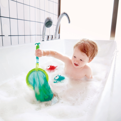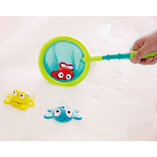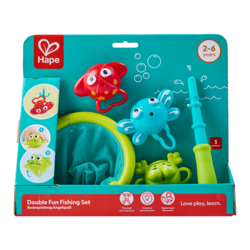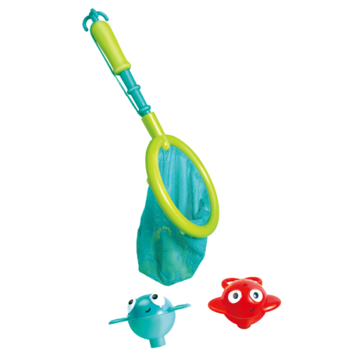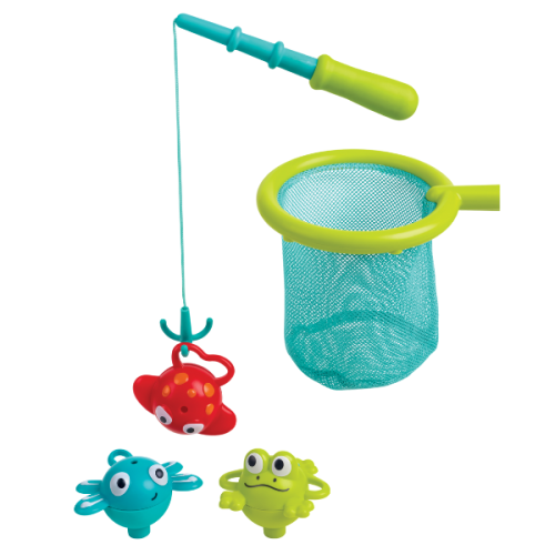 Игровой набор для ванной «Рыбалка – двойное удовольствие» превращает купание в увлекательное занятие, предлагая ребенку часы веселья и обучения в воде. Особенностью набора является его гибкость: можно менять насадку для «рыбалки» – использовать либо сачок, либо удочку.