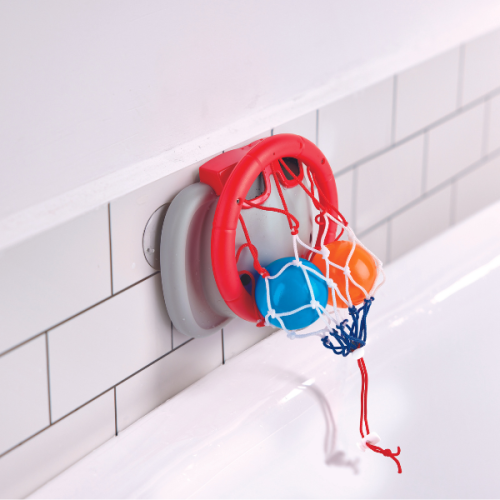Увлекательная игра: Имитация игры в баскетбол делает процесс купания более веселым и стимулирует интерес ребенка к водным процедурам.