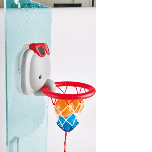Игровой набор для ванной «Слон» превращает обычное купание в веселое соревнование по баскетболу. Яркая фигурка слона легко крепится к стене ванны с помощью присоски. Задача ребенка – целиться и забрасывать маленькие мячики в корзину-хобот слона.