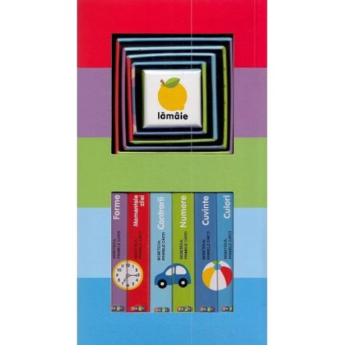 Этот образовательный набор из серии "Bebeteca: primele cărți" (Библиотека малыша: первые книги) поможет самым маленьким в игровой форме освоить базовые понятия. Набор включает в себя шесть замечательных книжек, с помощью которых дети смогут выучить цвета, числа, формы, первые слова, антонимы, а также части дня.