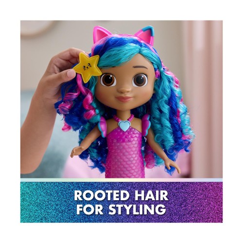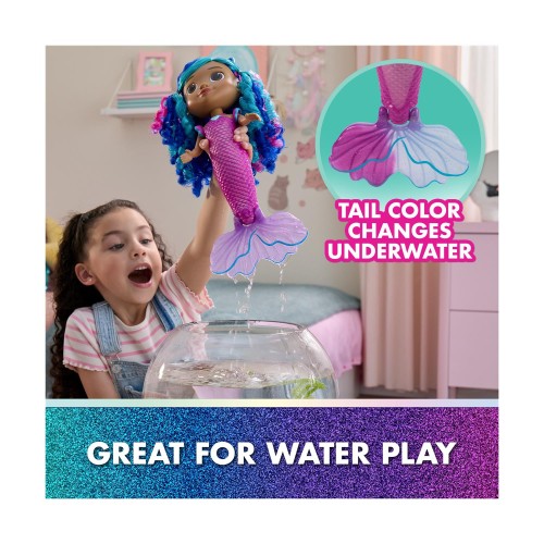 Окунитесь в мир волшебства из фильма "Gabby's Dollhouse: The Movie" с этой потрясающей куклой-русалкой! Sing & Shine Mermaid Gabby — это идеальная игрушка для ванны и не только, сочетающая световые, звуковые и водные эффекты для захватывающей игры. Хвост Габби-Русалки меняет цвет в теплой воде, добавляя элемент сюрприза и волшебства во время купания. Кукла водонепроницаема, что делает ее идеальной для игры в ванной или бассейне. А благодаря складывающемуся хвосту Габби может стоять на ровной поверхности, когда выходит из воды. Кукла высотой более 35 см (14 дюймов) имеет пышные волнистые волосы и поставляется с милым аксессуаром-морской звездой, который можно держать в руке или вплетать в волосы. 14 Звуковых Эффектов: Просто нажмите на ее ожерелье в форме сердца, чтобы активировать 14 различных фраз, звуков и песен из фильма "Gabby's Dollhouse: The Movie". Кукла также светится, оживляя игру.