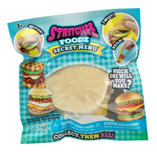 Главная особенность серии «Секретное Меню» - это элемент неожиданности: вы не знаете, какой именно персонаж вам достанется! В каждой непрозрачной упаковке скрывается один из милых персонажей Stretchee Foodz, выполненных в виде популярной еды (это может быть бургер, тако, картофель фри и другие). Этот азарт делает процесс распаковки увлекательным, поощряя детей и коллекционеров собирать всю серию.