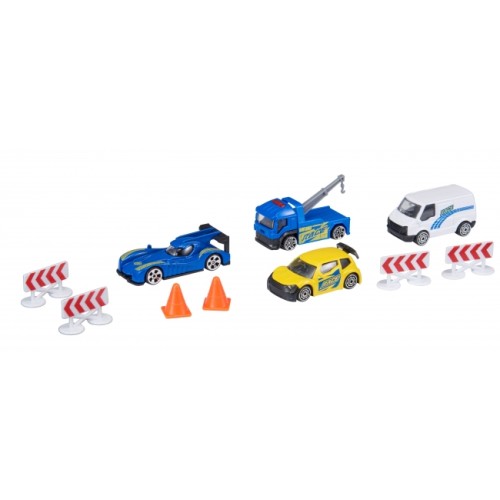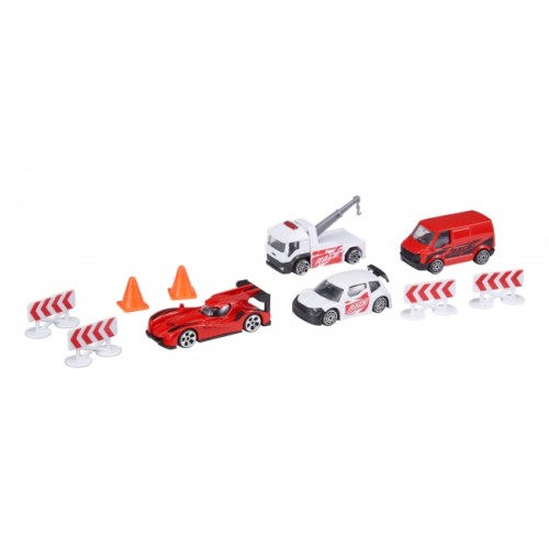 Этот набор от всемирно признанного бренда Teamsterz вдохновлен реальными гоночными машинами и оборудованием. Он представляет собой высокодетализированный комплект технической поддержки, включающий металлические автомобили и аксессуары, необходимые для гонок. Автомобили имеют литой металлический корпус высокого качества и независимые свободно вращающиеся колеса. Длина машинки составляет около 10 см. Эвакуатор оснащен подвижной стрелой и крюком.