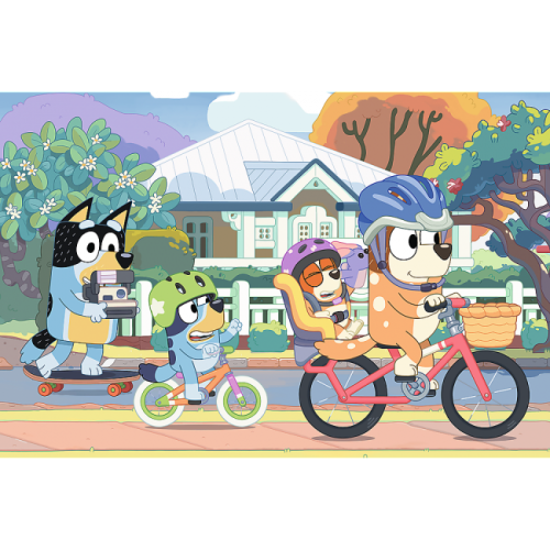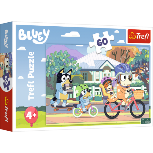 Этот пазл - официальный лицензионный продукт, посвященный мультсериалу «Блюи» о семье собак Хиллеров. Он состоит из 60 деталей, что является идеальным уровнем сложности для детей от 4 лет и старше, обеспечивая умеренный вызов. На изображении, вероятно, показаны Блюи, Бинго и их родители в динамичной и радостной сцене, подчеркивающей темы игры и семейных отношений. Trefl гарантирует яркие цвета и детали, изготовленные из плотного картона.