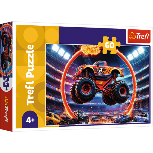 Этот пазл состоит из 60 деталей, что является идеальным уровнем сложности для детей от 4 лет и старше. На изображении, вероятно, показаны огромные грузовики-монстры с большими колесами, совершающие прыжки или сокрушающие препятствия, что делает сцену очень захватывающей. Пазл станет отличным подарком для мальчиков и девочек, увлекающихся мощной техникой и гонками. Trefl гарантирует яркие, насыщенные цвета и детали, изготовленные из плотного картона.