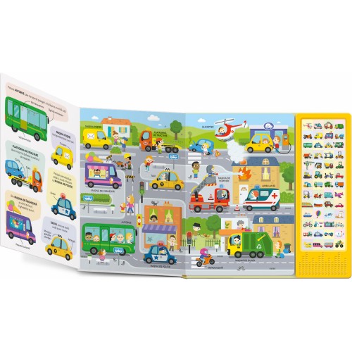 Это прекрасно иллюстрированная звуковая книга из серии "Cine face gălăgie?" (Кто шумит?) поможет ребенку выучить названия различных видов транспорта, узнать об их назначении и услышать издаваемые ими звуки. Нажимая на кнопки, малыш узнает о машинах, ездящих по улицам города, сельскохозяйственной технике, строительных машинах, самолетах и морских судах. Книга также содержит краткую информацию о каждом транспортном средстве, его использовании и компонентах.